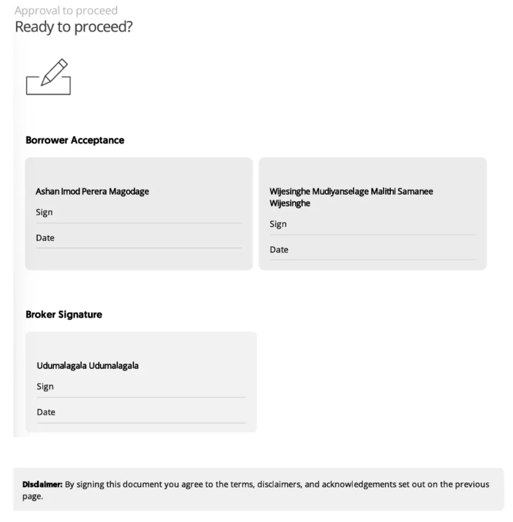 By clicking the button below, you are instructing me to proceed to lodge a loan with the recommended lender and product.